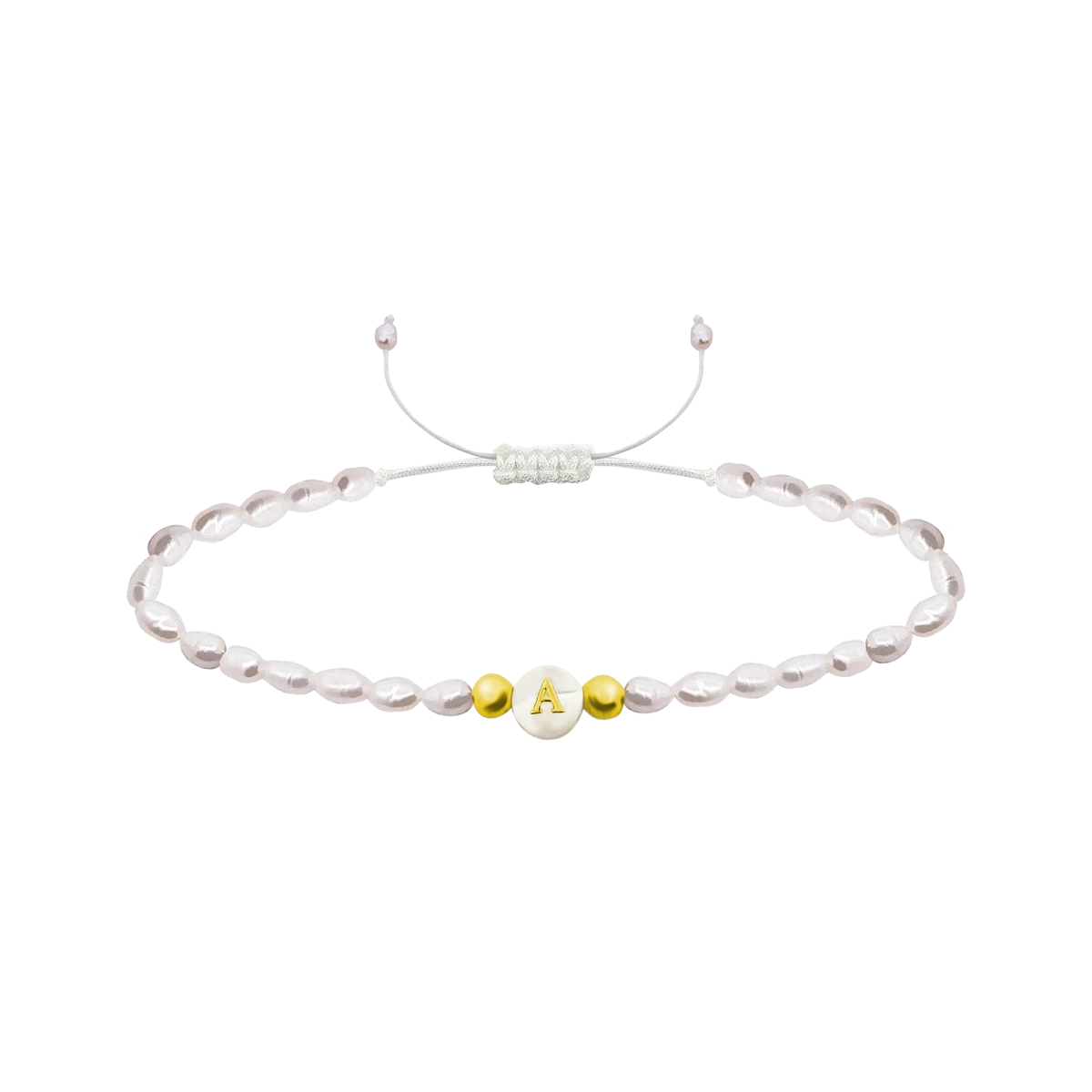 Fehér Édesvízi Gyöngy Betűvel Fonalas Karkötő