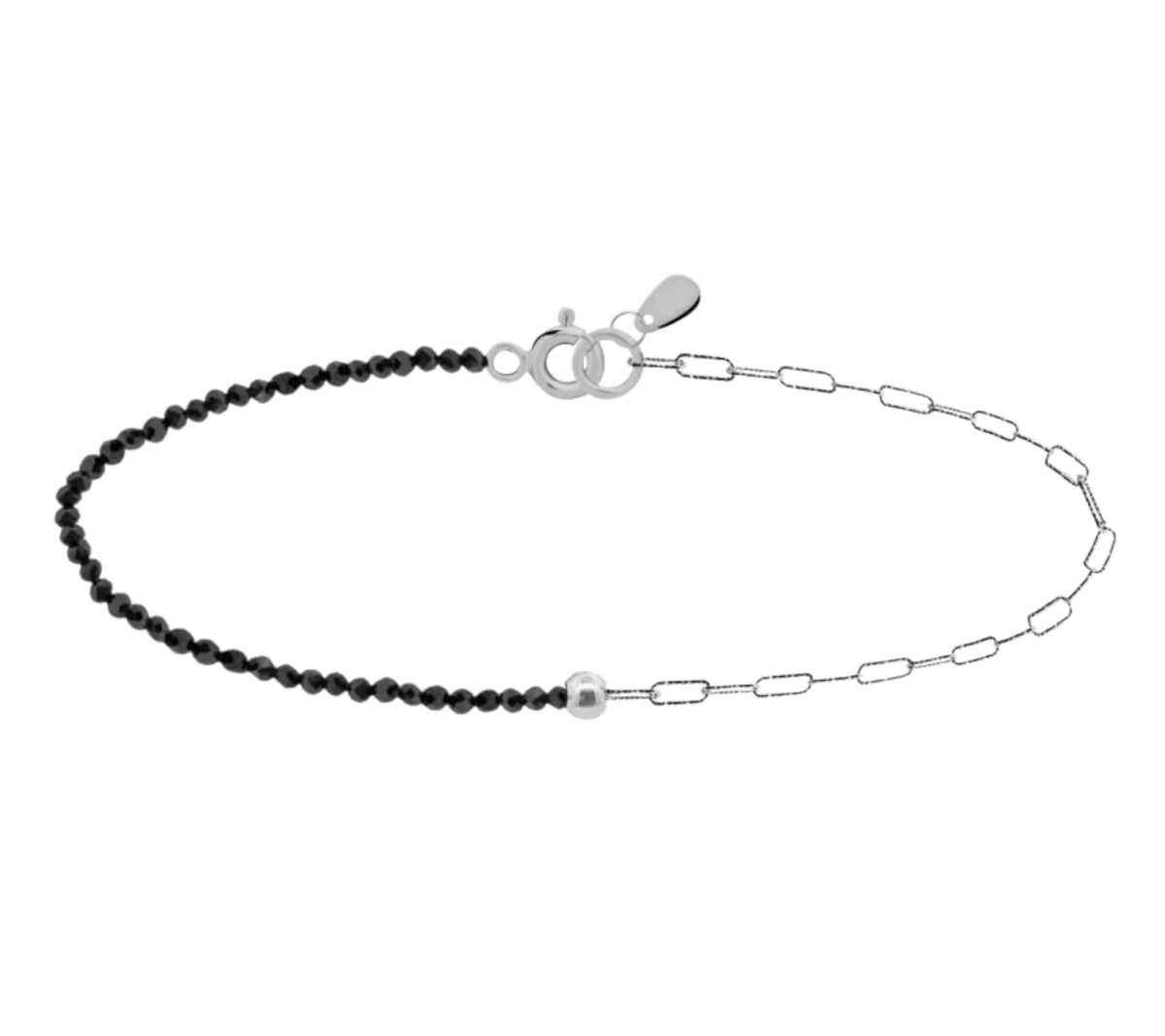 Fekete Spinell Ásvány Ezüst 925 Karkötő