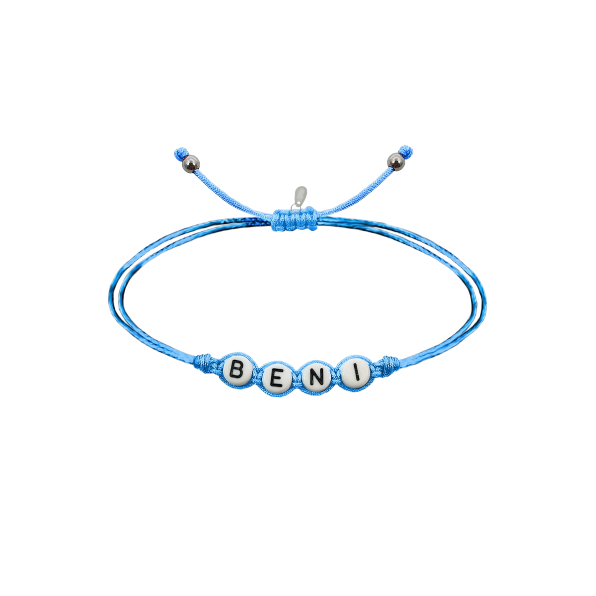Tedd különlegessé gyermeked ékszertárát ezzel a színes, szakadásmentes fonalból készült karkötővel, amely akril betű medálokkal és makramé technikával készült, két darab ezüst golyóval díszítve. A megadott ár 5 karakterig tartalmazza a betűket, e felett pedig csak 500,- Ft / betű a felár. Tökéletesen személyre szabható és biztonságos választás a legkisebbek számára. A megjelenítendő nevet írd meg nekünk a gravírozásban (lent) vagy a megjegyzésben!