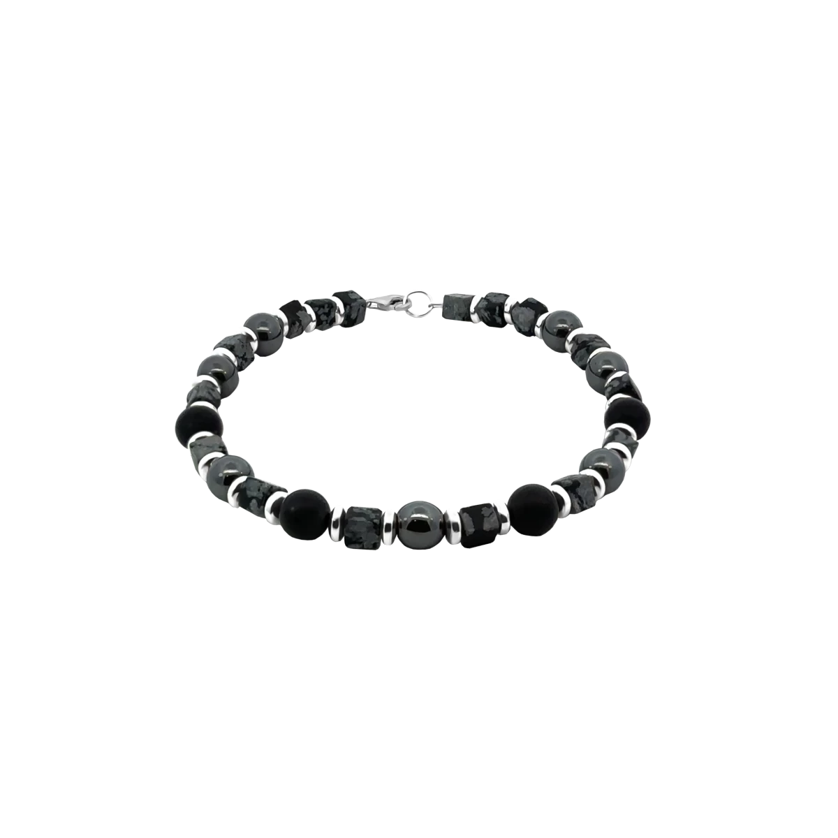 Hópehely Obszidián Ónix Hematit Ásvány Ezüst 925 Karkötő