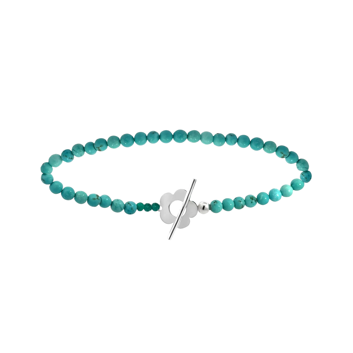 Engedj a természetes elegancia és finomság csábításának ezzel az esztétikus karkötővel, ahol a díszes, virág alakú exkluzív zár valamint a türkiz ásványok harmonikus összhangja kifinomult stílust kölcsönöz minden megjelenéshez!