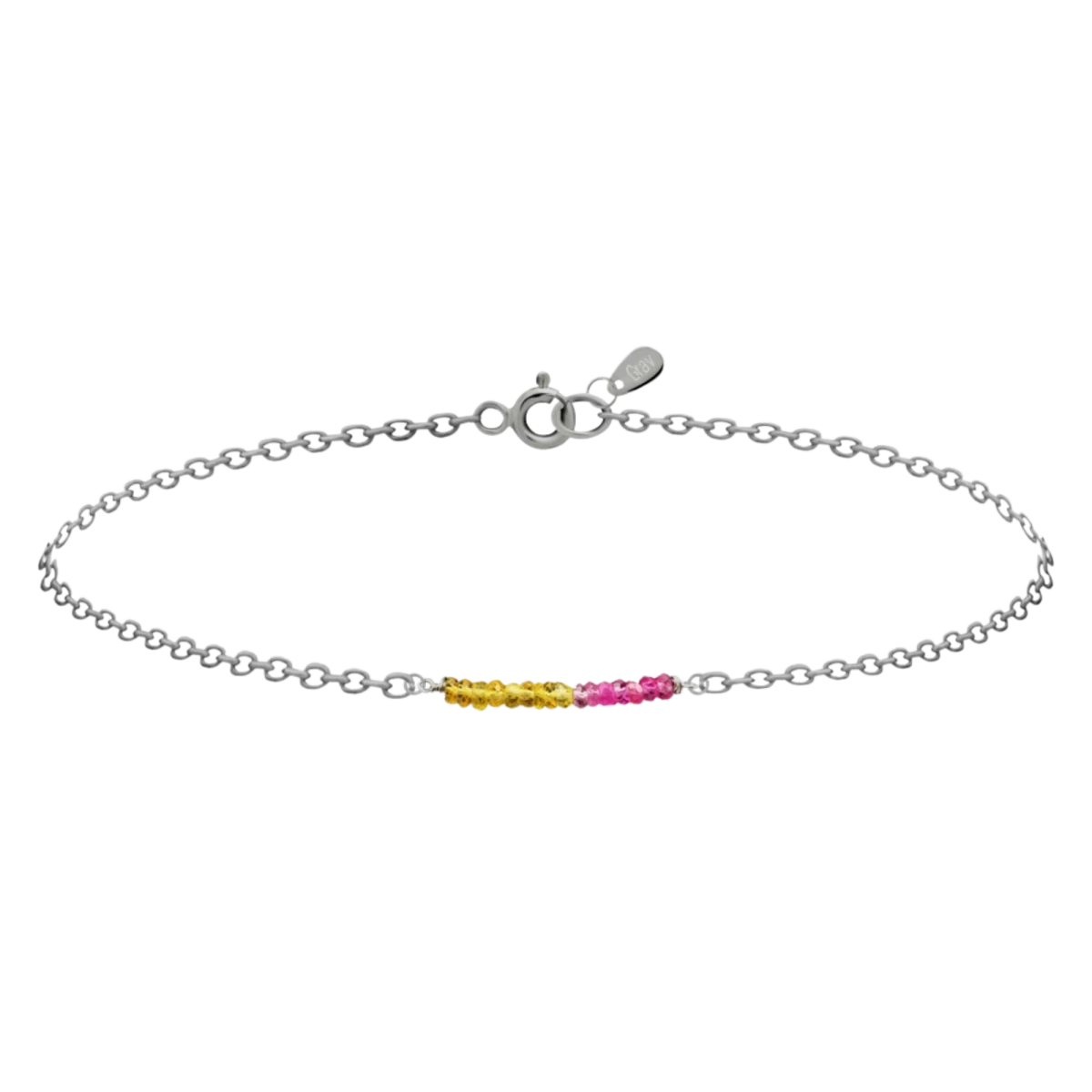 Drágaköves kollekciónk szemet kápráztató darabját viselheted magadon ezzel a gyönyörű karlánccal. A sárga zafír és a vörös rubin harmonikus találkozása egy ékszerben, amely benned is felpezsdítheti a tüzet. Alkalmi viseletként ajánljuk.
